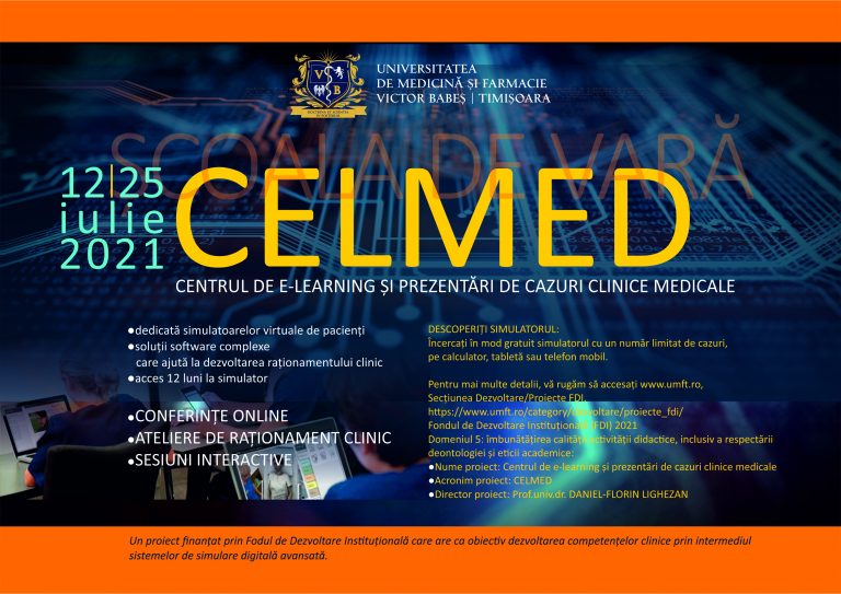 Studenții care în anul universitar 2020-2021 au fost înmatriculați în anii de studiu III-VI și care doresc să participe la școala de vară organizată în cadrul proiectului, sunt rugați să completeze formularul de AICI!