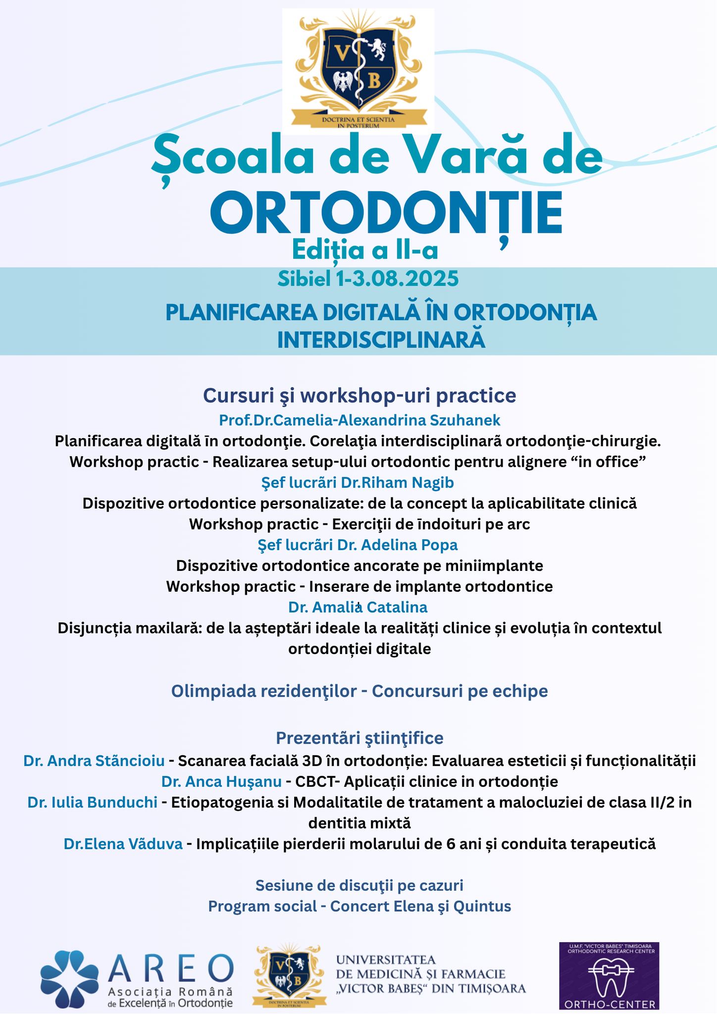 - Orthodontics – for 5th and 6th year students of the Faculty of Dentistry, Romanian and English departments