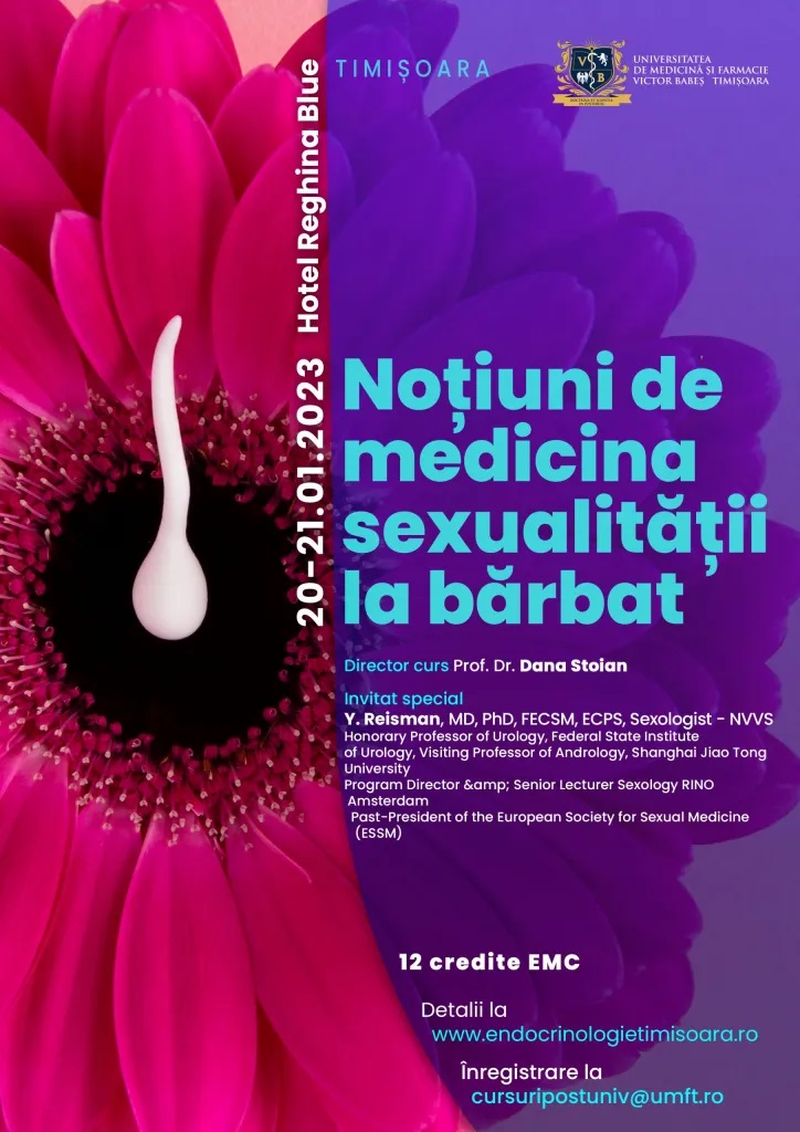 Îmi revine marea plăcere de a vă invita să participați la cursul postuniversitar ”Noțiuni de Medicina Sexualității la bărbat”.