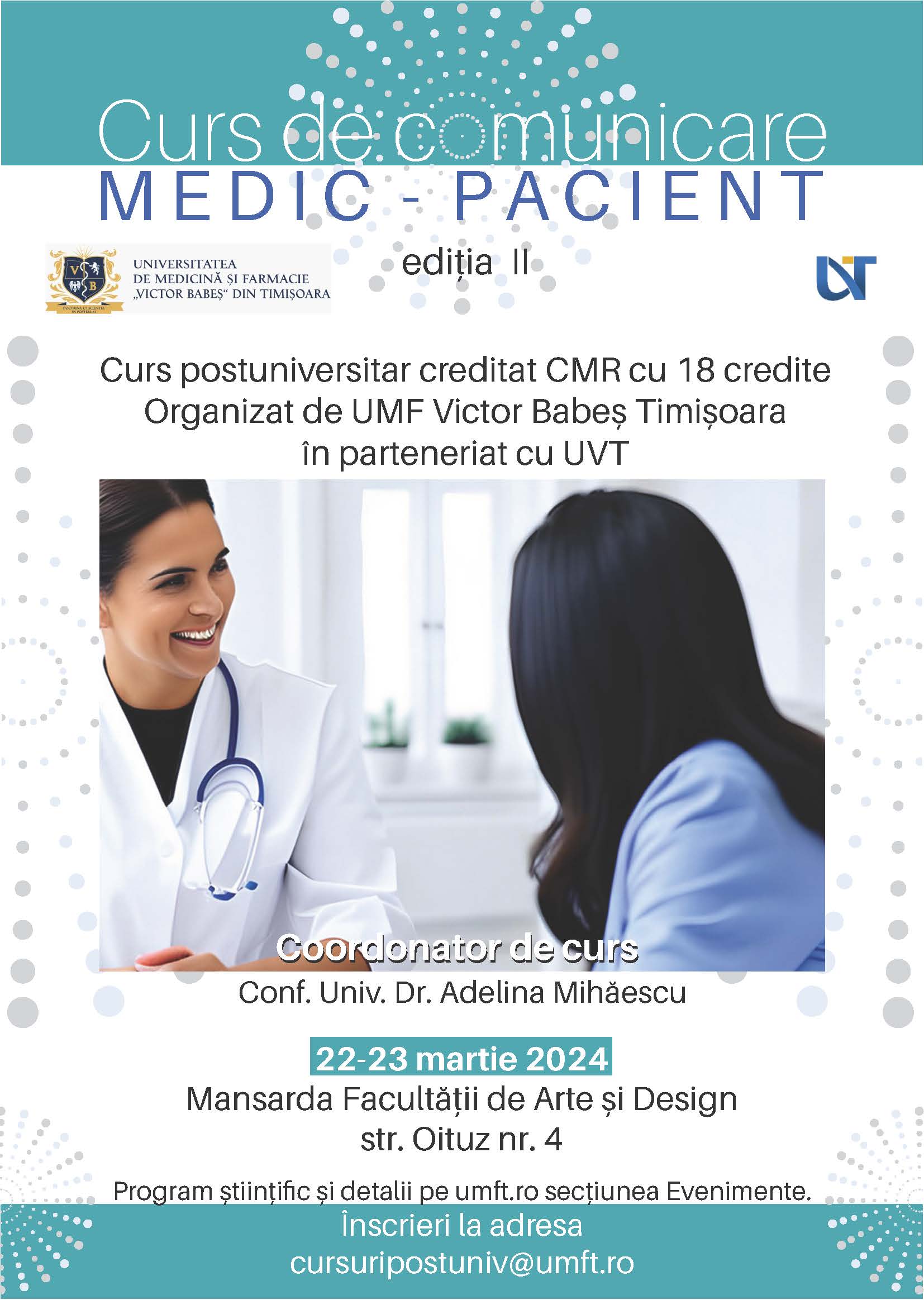 Nume: Curs postuniversitar de Comunicare medic – pacient, editia a IIa , creditat CMR cu 18 puncte EMC
