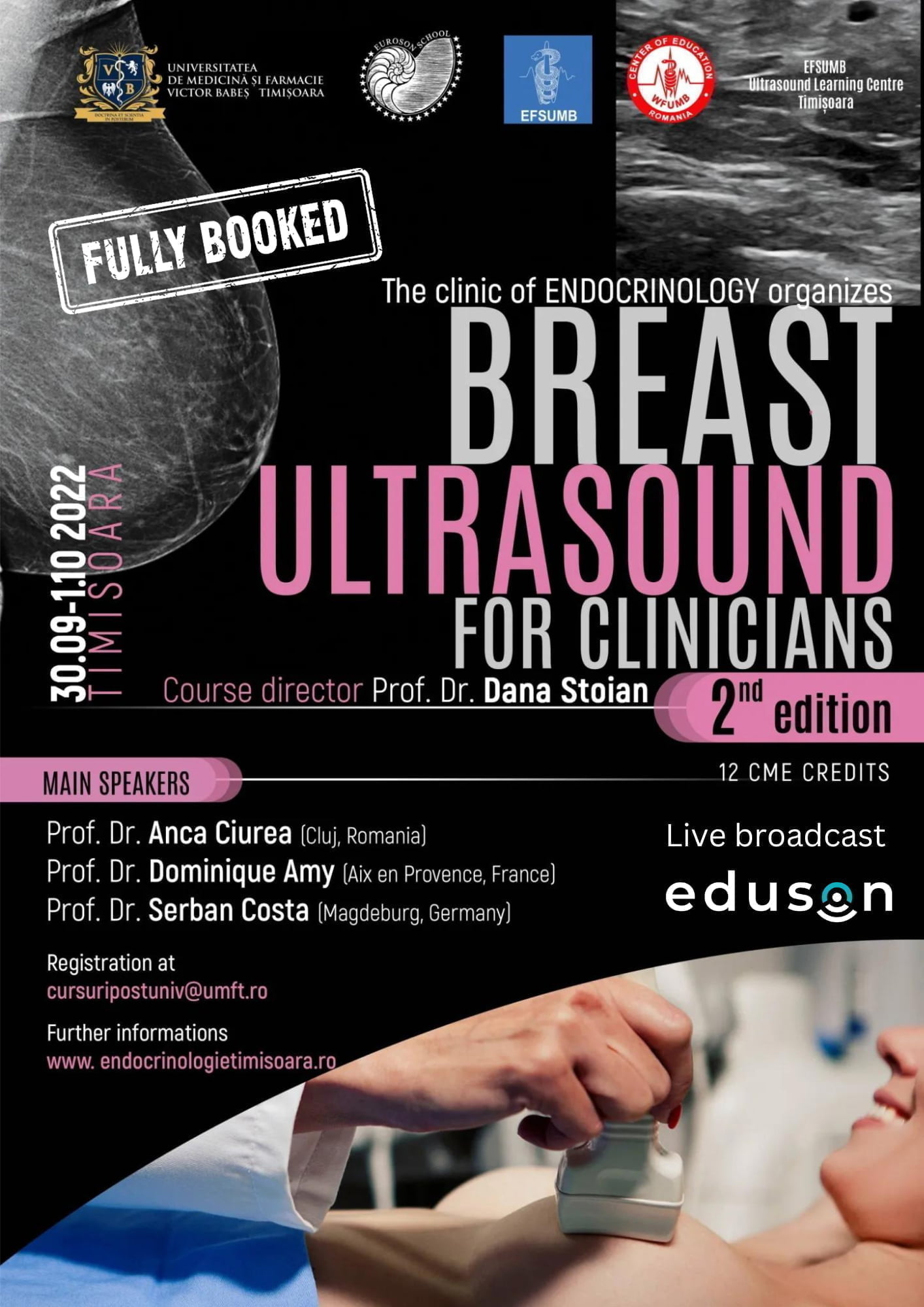 It is our grate pleasure to organise the 2nd edition of the postgraduate course “Breast ultrasound for clinicians”. After the 2020 1st edition, when more than 90 medical doctors from Romania did enjoy the introduction in breast ultrasound, we do propose the medium level course, in order to increase the knowledge of clinicians in the field of breast ultrasound.