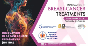 Vă invităm să participați la cea de-a doua ediție a Innovation in Breast Cancer Treatments (IBCTIM), care va avea loc în perioada 2-4 octombrie 2025 la Centrul de Convenții din Timișoara, un eveniment științific național cu participare internațională.