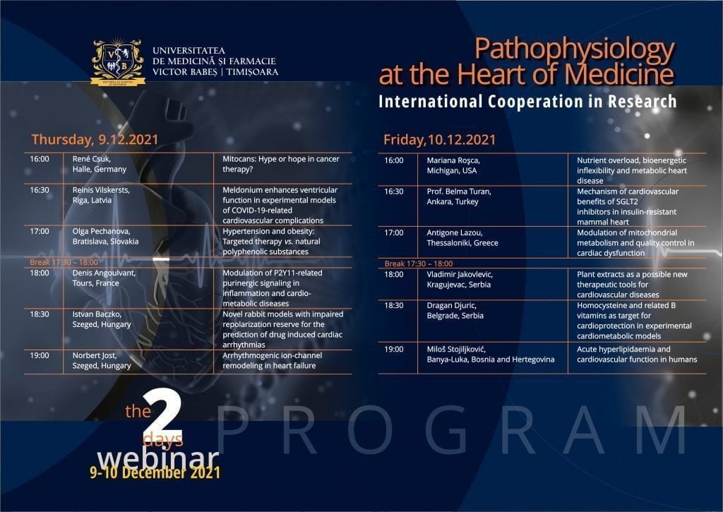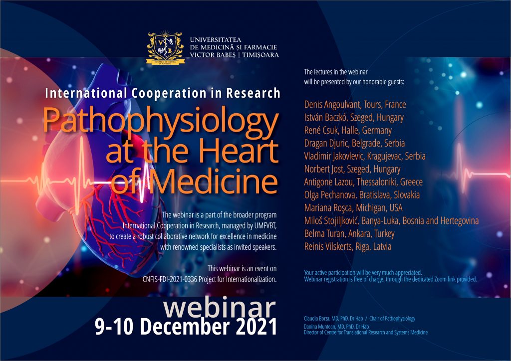 International Cooperation in Research at ”Victor Babes” University of Medicine and Pharmacy – ”Pathophysiology at the Heart of Medicine” | December, 9-10, 2021