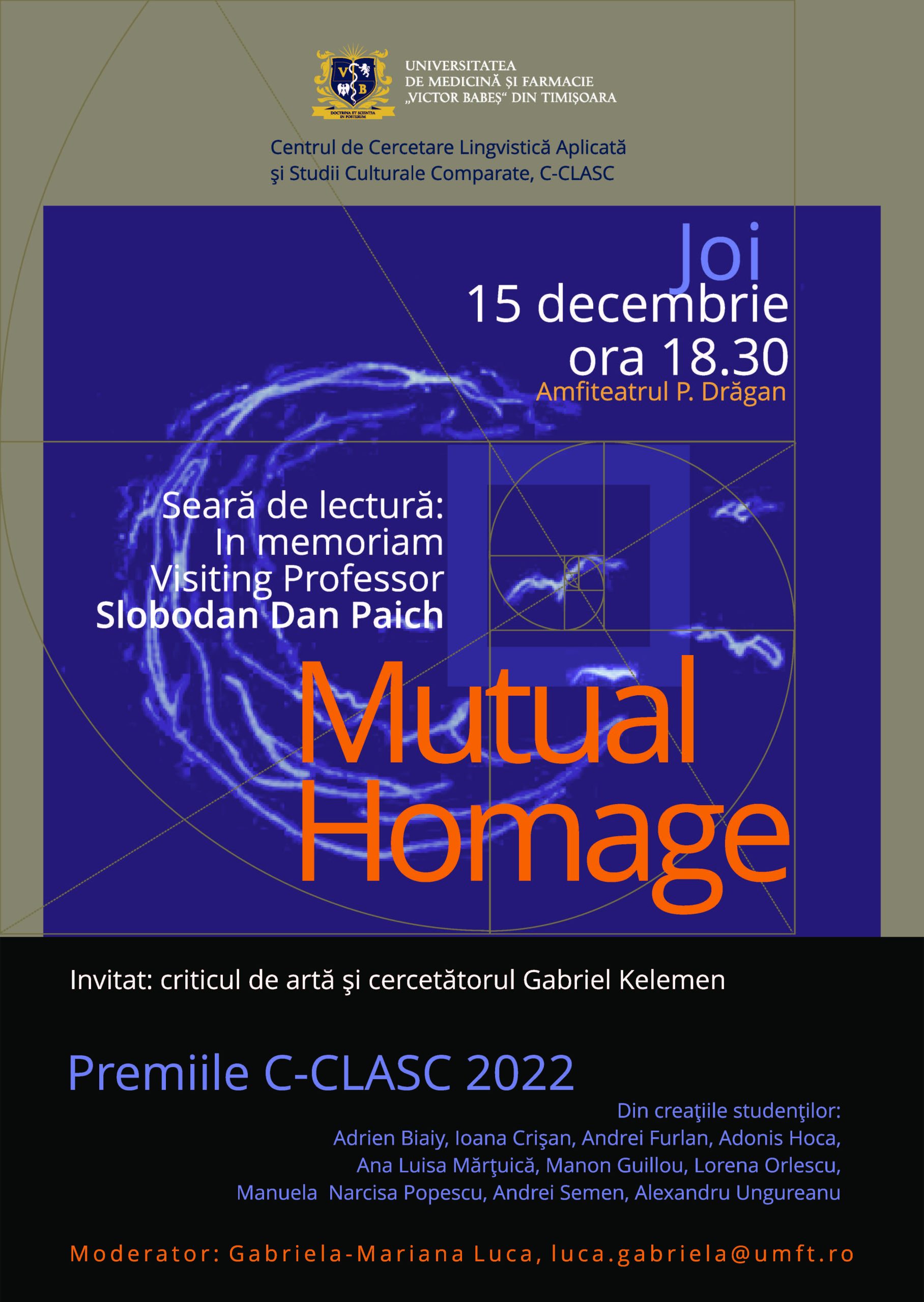 Artistul, criticul de artă și cercetătorul Gabriel Kelemen și studenți mediciniști vor împărtăși înțelesuri despre armoniile corpului, secvențe logice, coerența formelor, sunet, linie și cuvânt, inspirație și destinație.