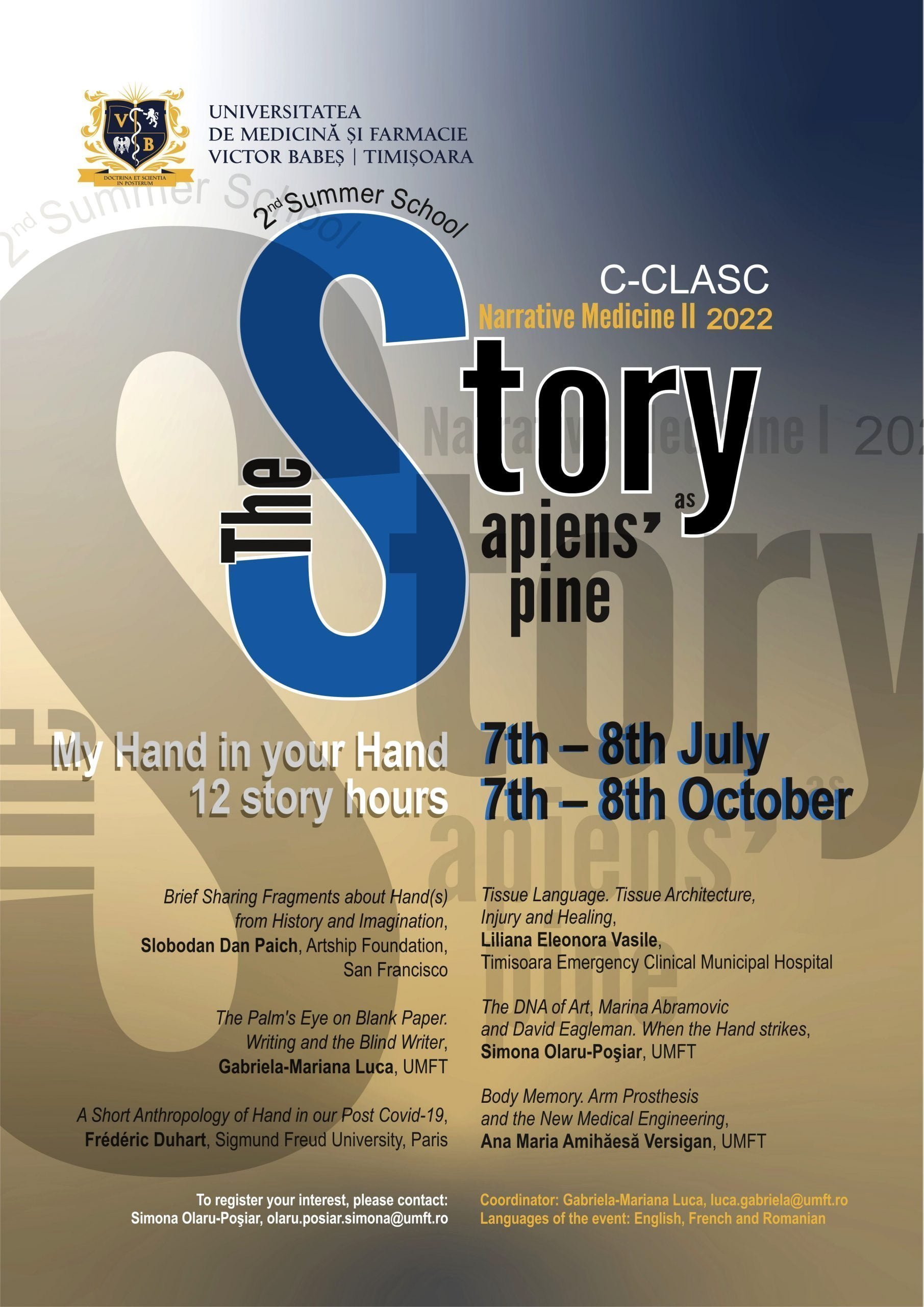 The Story as Sapiens Vertical Spine – Narrative Medicine II | The second edition of the summer school | 7th -8th July / 7th-8th October 2022 | My Hand in your Hand