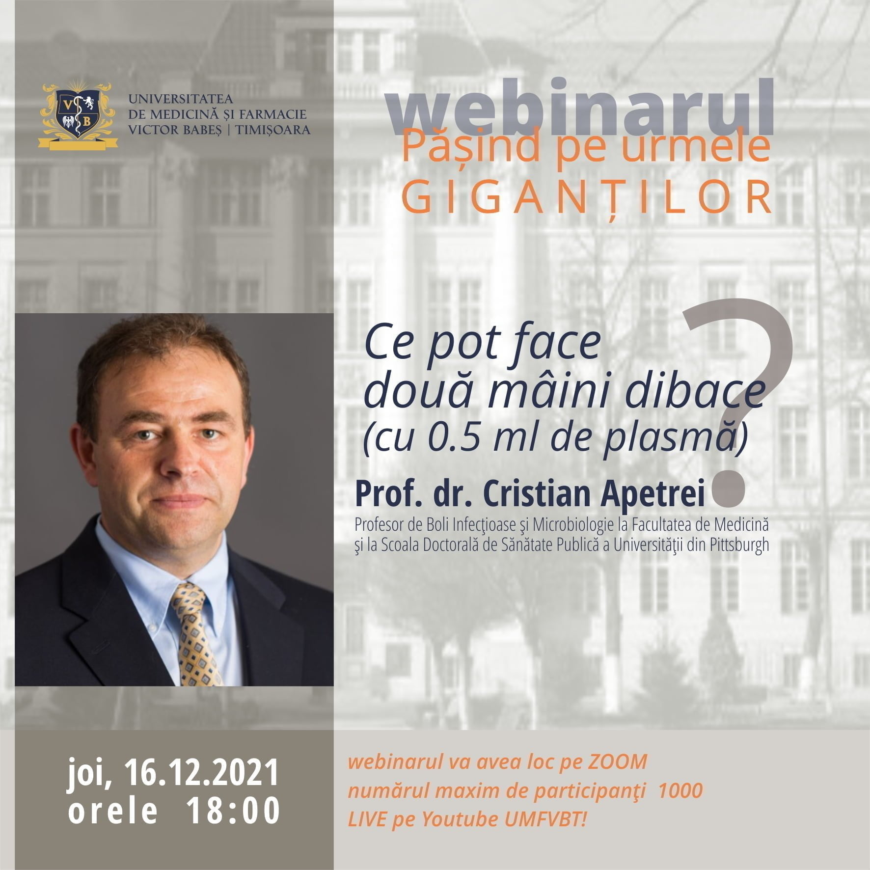 | ACCES ZOOM Webinarul va avea loc pe ZOOM. | LIVE pe YOUTUBE: https://www.youtube.com/c/UMFVBT