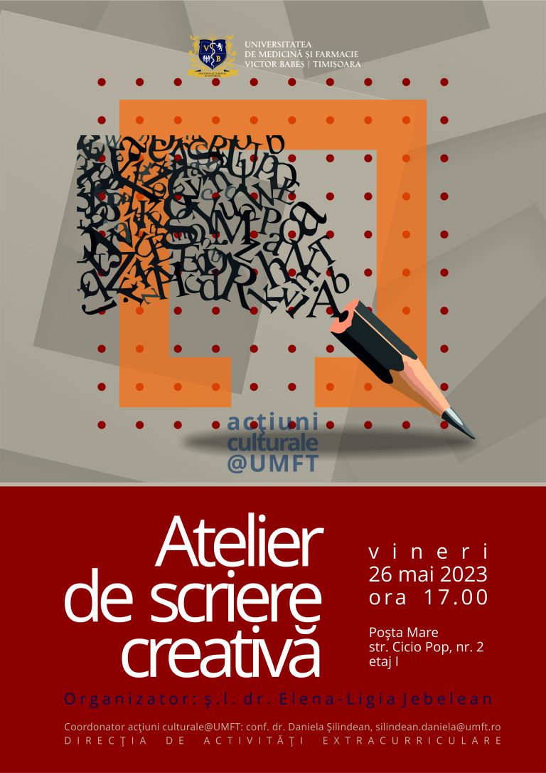 Universitatea de Medicină și Farmacie „Victor Babeș” din Timișoara anunță o nouă ediție a Atelierului de scriere creativă, parte a programului acțiuni culturale@UMFT.