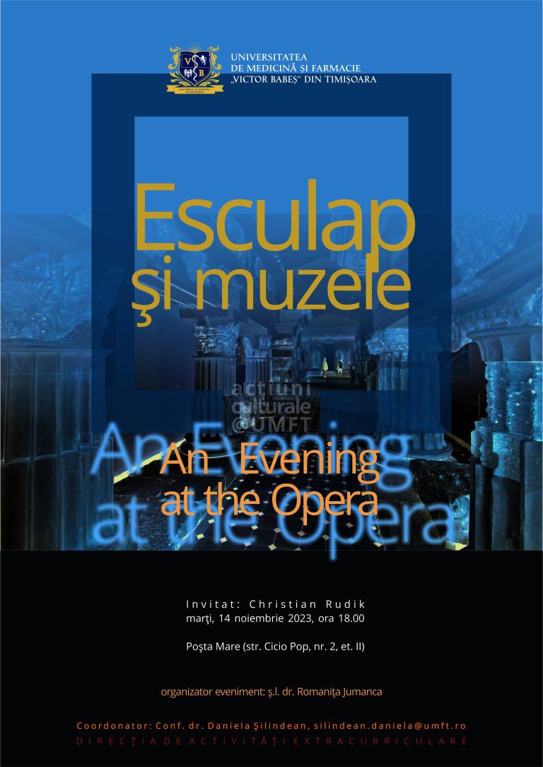 Universitatea de Medicină și Farmacie „Victor Babeș” din Timișoara vă invită la o nouă ediție An Evening at the Opera, parte a programului acțiuni culturale@UMFT.
