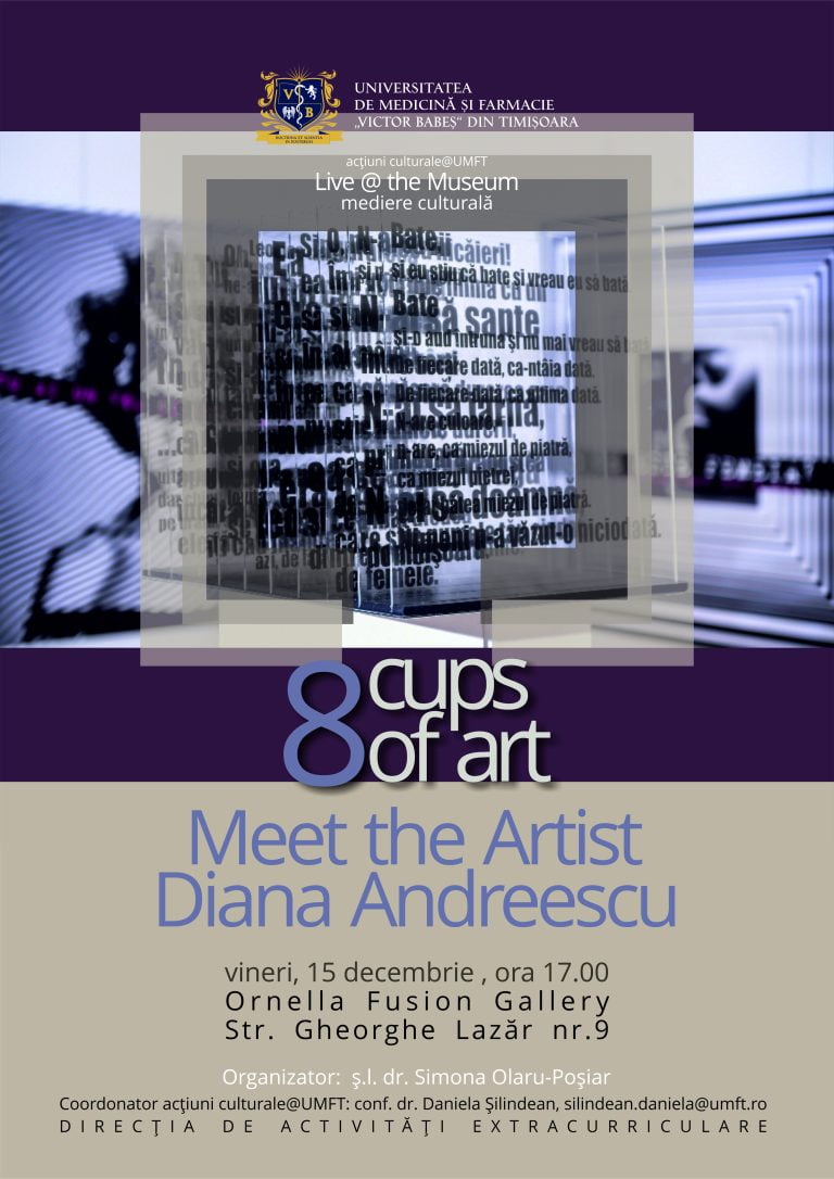 Universitatea de Medicină și Farmacie „Victor Babeș” din Timișoara organizează cea de-a opta ediție a întâlnirilor Live @ the Museum – 8 Cups of ART – Meet the Artist, din cadrul programului acțiuni culturale@UMFT.