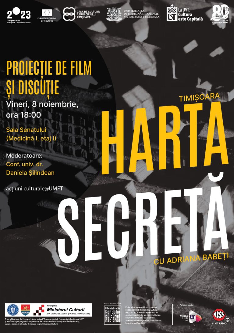 Universitatea de Medicină și Farmacie „Victor Babeș” din Timișoara vă invită, în cadrul programului acțiuni culturale@UMFT, la Timișoara: Harta secretă.