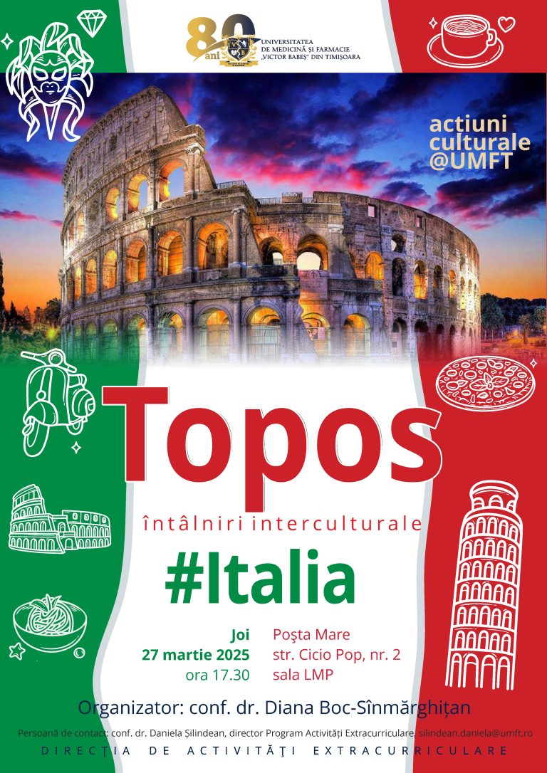 Universitatea de Medicină și Farmacie „Victor Babeș” din Timișoara vă invită, în cadrul programului acțiuni culturale@UMFT, la Topos.