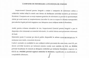Campanie de informare a studenților străini