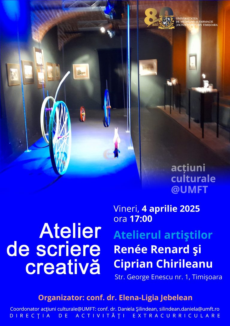 Universitatea de Medicină și Farmacie „Victor Babeș” din Timișoara vă invită, în cadrul programului acțiuni culturale@UMFT, la Atelierul de scriere creativă.