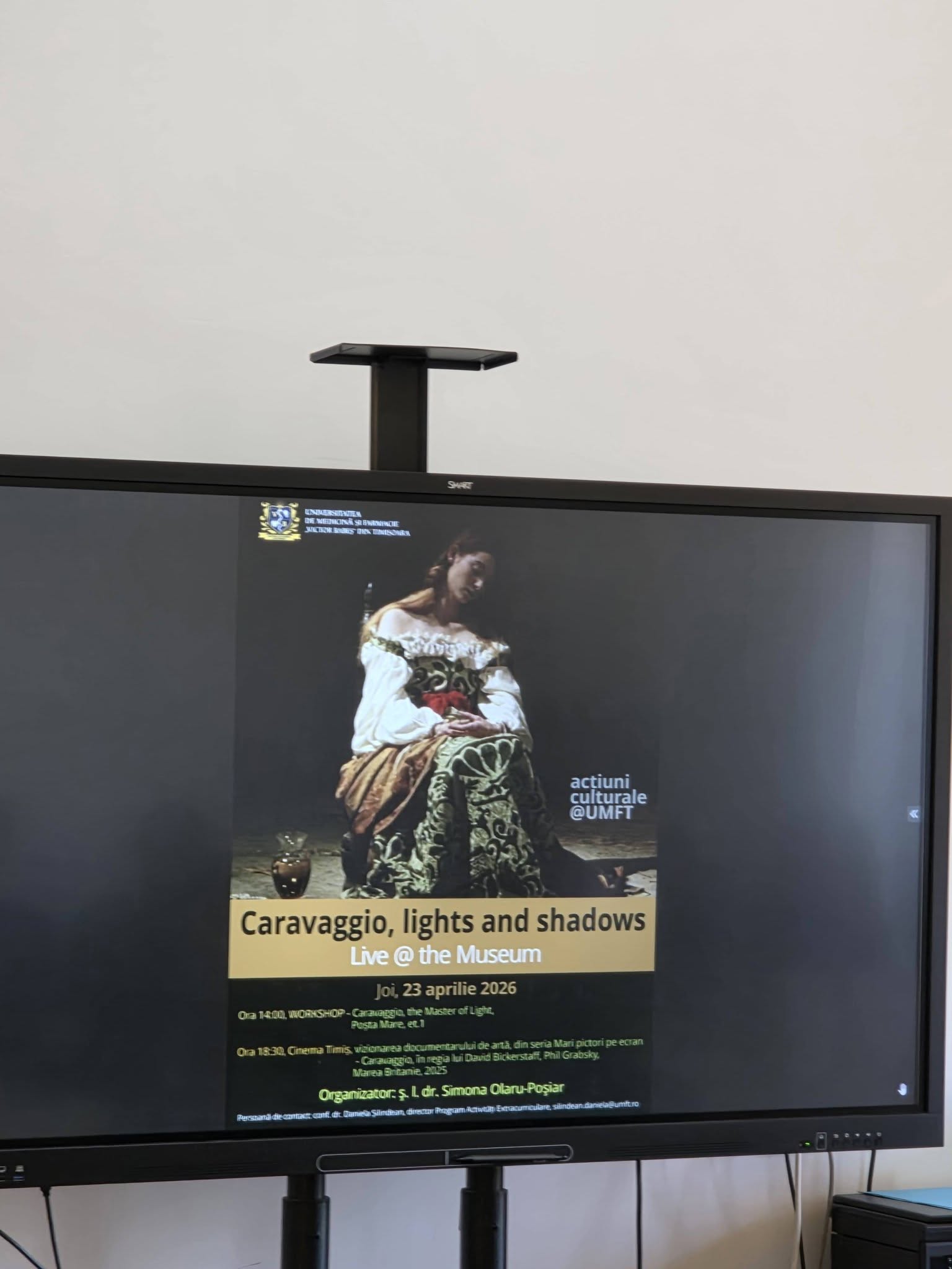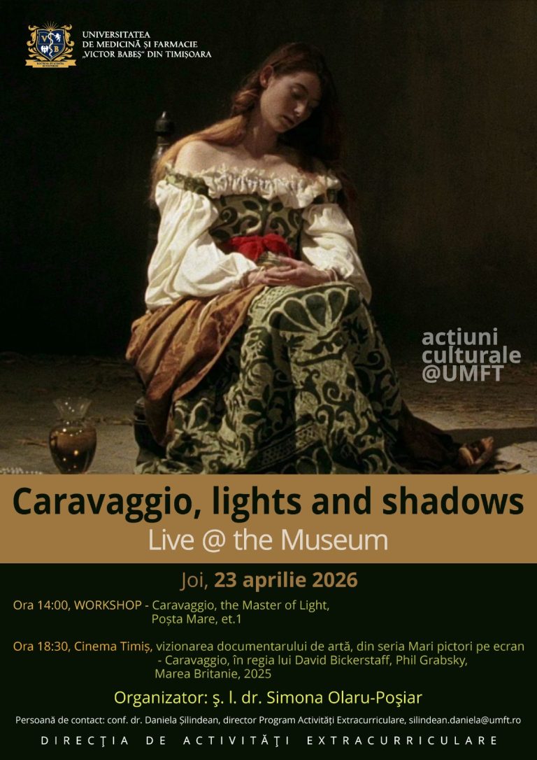 Universitatea de Medicină și Farmacie „Victor Babeș” din Timișoara vă invită, în cadrul programului acțiuni culturale@UMFT, la Live@the Museum: Caravaggio, lights and shadows.
