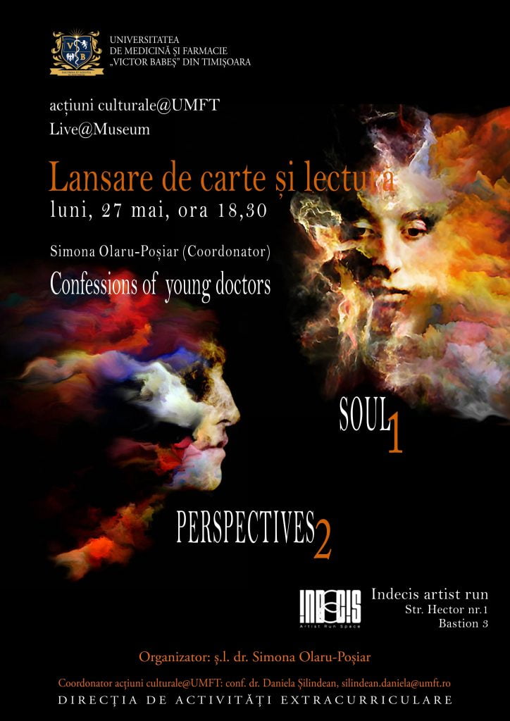 Universitatea de Medicină și Farmacie „Victor Babeș” Timișoara vă invită la lansarea volumelor Soul și Perspectives, Confessions of Young Doctors. A Therapeutic Journal, apărute sub coordonarea șef lucrări dr. Simona Olaru-Poșiar.