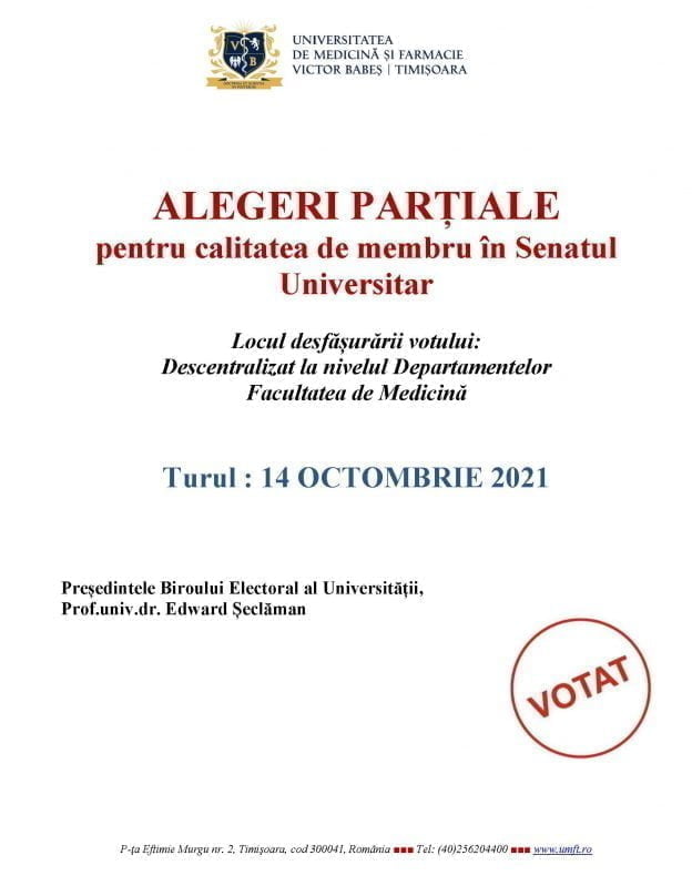 pentru calitatea de membru în Senatul Universitar