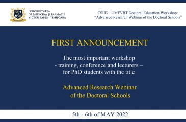 Workshop Advanced Research Webinar of the Doctoral Schools 5th – 6th of MAY 2022