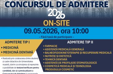 Începând cu data de 03.03.2026, ora 08:00 Au fost puse în vânzare testele de biologie și chimie pentru admiterea la programele de studii Medicină și Medicină Dentară (TIP I) ale facultăților Universității […]