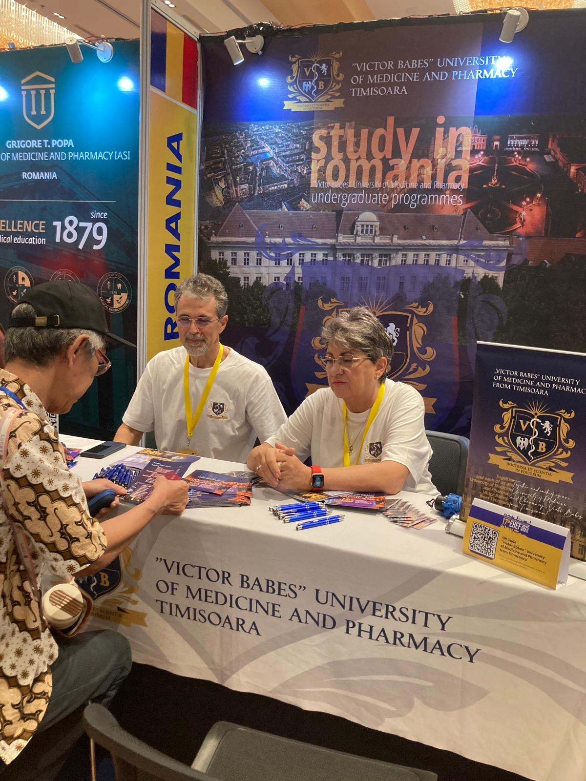 Universitatea noastră a fost prezentă la cea de-a 17-a ediție a târgului educațional EHEF 2025, din Indonezia, în două locații, Yogyakarta și Jakarta. La stand am fost vizitați de domnul Adrian Balănescu, Ambasadorul României în Republica Indonezia, și de doamna Maria Voinescu, Consul al acestei ambasade.